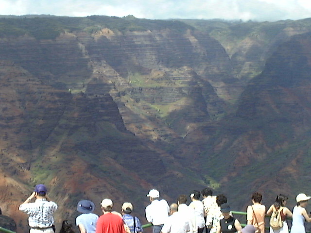 初日はホテル(シェラトン・ワイキキ)の構造や周辺の地理を十分に把握したあと、夕食用食料をABCストア(コンビニみたいなところです)で調達してくるだけで終了。翌日のツアー、カウアイ島は自然の名所が実に多く、ミニ・グランドキャニオンと呼ばれるワイメア渓谷の壮大で美しい光景や、ハワイ王朝が栄えていた頃に王族が結婚式を挙げたという「シダの洞窟」の他に、世界一年間降