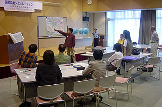 | 5月例会第2回つどいの杜「国際協力シミュレーション」を開催しました。 この国際協力シミュレーションは、青年海外協力隊に参加し、実際に国際協力に携わったOB隊員の体験談をもとに、対象国が抱える問題やその背景を知った上で、もし自分(参加者)が隊員として、またはその他の国際協力機関やボランティアの一員として参加した場合、どのように関わっていけるかを考えました。 |