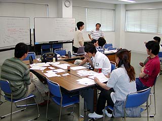 パソコンとアクティビティーを組み合わせている。 CDROM教材「ひょうたん島問題」ワークショップの体験