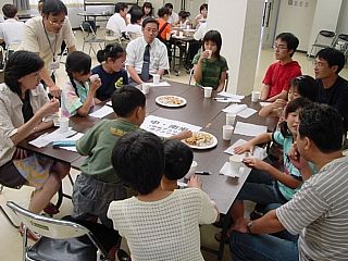 | 田辺市民総合センターにおいて、23日、「世界が100人の村だったら」のワークショップを和歌山県人権啓発センターとの共催で行いました。 これは、2年前に発刊されて話題を呼んだ本「世界がもし100人の村だったら」(池田香代子 再編、C.ダグラス・ラミス対訳)をワークショップにして、参加型で楽しく学べるようにしたものです。 学校ではなかなか教えてもらえない世界のこと、TVだけではわからない世界のこと、でも私たちと確かにつながっている世界のことを一緒に考えてみました。 参加者は44名。内訳は |