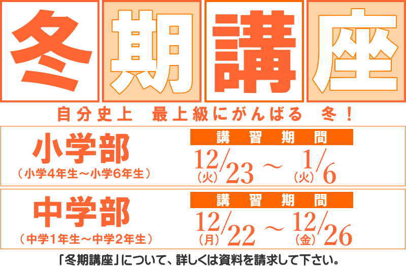 井上塾ニュース ○ 井上塾ではじめよう! 対象:小学4年生~中学3年生 井上塾で勉強を始めませんか? 先ずは資料請求。お気軽にお電話下さい! “シャトルバス”運行中。 学校終了後、まっすぐ塾へ! 3学校区、3住宅地(南大和・北野・花吉野)で運行します。 通塾するのに便利で安心。 詳しくは電話で資料請求して下さい。 冬期講座で井上塾を体験してみよう! 対象:小学4年生~中学2年生 冬期講座、井上塾ではじめようよ! しっかりバックアップで安心の体制。 まずは資料請求