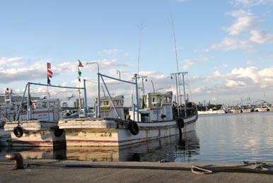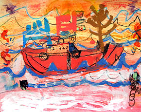 説明を受けて、各自描く場所を決めます。 波間がきれいな場所、船を真正面からとらえる場所など、描きどころのある場所が色々あります。 説明直後、すごい集中力で描きだす子供たち。