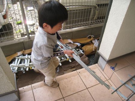 2011年4月20日、何の前触れも無く、突然家に帰ってみると大きな荷物が!忘れた頃にやって来る、モデルニクスさんの入門セット(納期90日以内)がついに到着しました!想像してたより小ぶりな荷物ですが、車両キットの部品が入った箱はとても重い…さすが5インチゲージ、大きな模型と言うより小さな鉄道って感じです。運送屋さんも「何か鉄の塊なんですけど…」と言って配達してきたそうです。うちの奥様がレールですというと苦笑いしたとかしなかったとか…