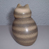 今月ご紹介する猫は海外の作家さん。でもごめんなさい、お名前は覚えていません・・・(爆) 今度またお店に行って調べてきますね。 陶器で出来ているんですがなんともいえない・・・いい色柄をしています♪ つるんとした触り心地もお気に入り♪決して可愛い顔をしているわけではないのですが猫の気品を感じます! ↓後姿のシルエットもちょっぴり哀愁を感じさせて・・・チャーミングでしょ?(単なる思い込みかっ!:笑)