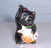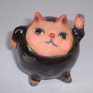 西瓜作りに夢中になっていた夏が終わり・・・気がつけば10月!早いものですね。(^_^;) 今月ご紹介する猫は先月(23日・24日)瀬戸で開かれた「招き猫祭り」でゲットしてきたkomkomさんの猫さんです。 真ん丸いボディに可愛いお顔・・・・「チワっす。」と左手を上げて話しかけてくれそうな表情は・・・ 猫というより、不思議の国(komkomワールド?)の住人のようで楽しくなりますね〜♪ ↓は瀬戸のお土産に買ったお煎餅のおまけに付いていた黒猫さん。 この日はなんだか黒猫さんにご縁があったようです♪(*^_^*) |