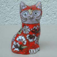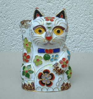 今月の猫さんは、中国の七宝焼き。実は先月の北京旅行でゲットしてきたものです♪ ツアーの中では、シルク工場や翡翠のお店など無理やり(笑)連れて行かれるところもあるのですが 七宝焼きの工場もその中のひとつでした。(^^ゞ でもその製作過程を見てびっくり!じつに細かい作業なんですね〜。銅線の貼り付けやら スポイトでの色付けなど・・・なかなか興味深くて面白かったです!(*^。^*) 日本独特の手招きポーズはちょっと珍しいかな?と見つけたときは嬉しかったです♪