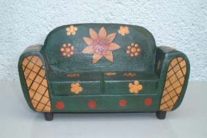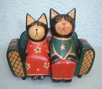 9月の猫さんは・・・・木彫りシリーズ第3弾です! びみょ〜に招き猫というテーマからズレていっているような気もしますが・・・気にしないでくださいね。(笑) 可愛いソファーにちょこんと座った二人は恋人同士というより仲の良い兄妹のようにも見えませんかぁ♪ それぞれがバラバラになりますが、まずこのソファー↓が気に入って・・・購入しましたよん♪