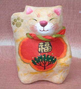九月・・・・そろそろ秋めいて落ち着きたくなる季節ですが・・・ 今月は自分の気持ちを元気づけるためにも(?) ・・・明るい色合いの可愛い猫さんを選んでみました♪ これは張り子なんですが、きれいにお化粧(仕上げ)されたところは ちょっとおしゃまな女の子といった感じでしょうか♪(^m^) ↓それからもうひとつ、毎年9月29日は「招き猫の日」として 各地で楽しいイベントがいっぱいあります!・・・これは数年前・・・ 初めて伊勢の『来る福招き猫まつり』に行った時、 おかげ横丁「吉兆招福亭」さんで購入したお店オリジナルの招き猫。・・・・・ 毎年この季節はなんだかワクワクしてきますぅ〜♪ |