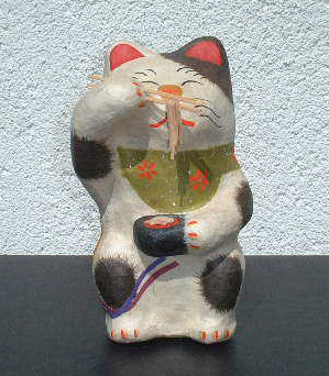 十月は・・・「天高く猫肥ゆる秋」ということで(?) お蕎麦を食べている猫さんの登場です! 招き猫といえば昔からお蕎麦屋さん(おうどんやさん)の店内やショーウィンドーなどで よく見かけられましたよね♪・・・・でも、お客さんを招く前に自分でお蕎麦を食べちゃったら ・・・仕事にならないですよね〜(笑)