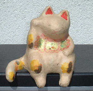 ↓そしてもうひとつ、張り子の猫さん。京都のお土産やさんで買ったものですが・・・ ちょっと・・・もっちゃり(←関西弁?)してますかぁ〜(^m^)