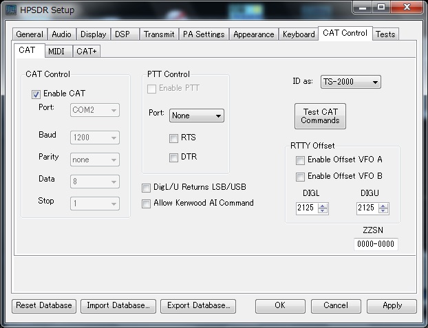 ・PowerSDR mRXのSetup・CAT Control・CATタブにPORTを設定しEnable