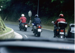 「まだサイドカーに慣れていません、最後尾を走ります」と杉浦さん。私が先導し最後尾にてナビゲ