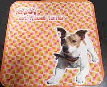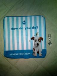 | これはオリジナルハンカチ 勿論画像はナナです (お友達がいろんなグッズを作ってくれるサイトを見つけて ナナの写真を加工して注文してもらいました) |
