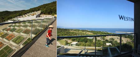 連日続くオリンピックサッカ-のおかげで、ますます美味しくなるビ-ル。睡眠時間は、夜10時からキックオフで目を覚まし、そして試合終了後、朝食、仕事と時間繰り上げの今日この頃。とはいえ、夏休みのタケをどこかに連れていってやりたくて、淡路ウエスティンへ。ここのバルコニ-からの眺めは素晴らしいですが、バルコニ-に出る引き戸や手すりの形状、その他さまざまな細部まで設計者の意思が感じられ、とても落ち着きます。隣接する夢舞台は人工池や滝の水が止められ、少し寂しいような気がしましたが、迷路のようにつづく階段や通路を、楽しそうに走ったり立ち止まったりするタケ。海は青く、影は濃く、静寂なコンクリ-トの壁を堪能した2日間でした。