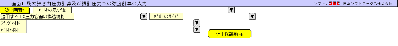 | 製品案内 金属面接触クラス1フランジ計算名人 画面1: 入力及び最大許容内圧力計算 ルーズ形差込み溶接ハブ付の例 |