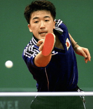 男子準々決勝、日本は3−2で辛くも中華台北を振り切った。1985年以来 初めて団体準決勝に進んだ。準決勝の相手は中国チーム。図は日本の名手田崎のバックショット。