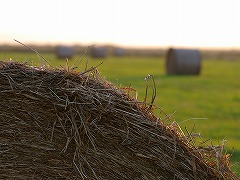 1年間に2〜4回ほど牧草を育てて刈り取るのですが、あと1ヶ月もすれば初雪も降るのでこの刈り取りが今年最後なのでしょう。 しっかりと巻かれた牧草ロールは 『 バームクーヘン 』 のようです。 昔は牧草を牧場のシンボルとも言える塔のような 『 サイロ 』 に入れて熟成させ乳牛の飼料としていましたが、今では牧草ロールを黒やら白のビニールをぐるぐる巻きにして倉庫に積み上げるだけ。 機械などの設備投資は必要ですが作業は随分楽になったのでしょう。