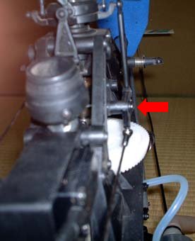 そこで原因を調べるとエルロンサーボの動きを中継するエルロンレバーの軸が動いているのです(写真1,2矢印)。