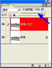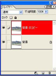 ”背景レイヤー”の上に新しく”背景のコピー”のレイヤーができます