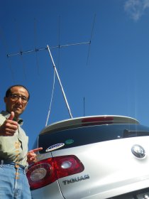 先々週は同じ場所にTシャツ・半パンでの 右の写真後方が愛宕山です。 無線の方はボチボチでした。 |
