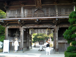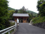 S君は朝になって、昨夜の温泉が効いたのか「歩けます」と嬉しい声をあげました。今日は最大の難所「遍路ころがし」といって、ここの歩きで遍路を断念する人が多いことから呼ばれている関門なのです。実は昨夜少々びびりまして、余分な荷物を宅急便で送り返したのです。白地下足袋・楽譜・コッフェルの一部・黒紋付等、少しでも軽くしようと思うぐらいに重量が応えるのです。納経帳も2冊になると意外と重いし、大袈裟も、餉箱もリュック入れなければなりません。(歩いているときは、正式な虚無僧姿ではトテモトテモ、袈裟をはずし、下箱をリュック内に、天蓋は手持ちでないと危険ですし、)山門の前で身づくろいをしてから
