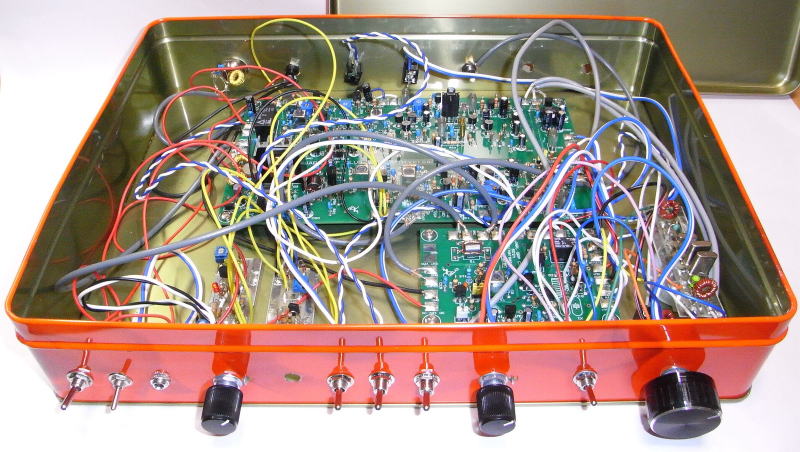 2016年5月時点で専用ケースの配布はまだだったのですが、中味が完成したので、お菓子の缶で仮ケーシングをしました。変更申請の手続きも完了し、まずは10局と交信したので、2016/6/4 にページを公開しました。