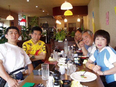 ここで流れ橋から引き返して来たClifさんと合流。いかにも走りそうないでたちに一同から歓声あがる。