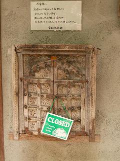 お店の壁にかかっていた祠? 形(レリーフ)からして、キリスト像か十字架でも入ってるのかと思いきや、メニューでした。 |