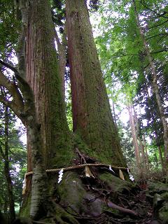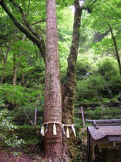 | 相生の杉 同じ根から生えた2本の杉 樹齢千年 相生は「相老」に通じ、夫婦共に長生きの意味 |