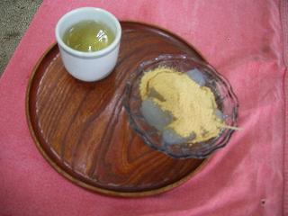 雨が降ってきたので、境内の中にある茶店で一休み。わらび餅(お茶付きで350円也)を頂きました。