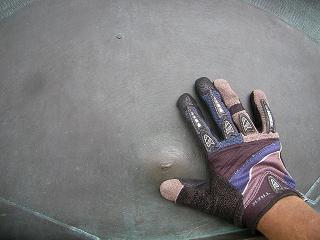 青銅製の甲子園球場。親指の上にあるのがマウンドです。