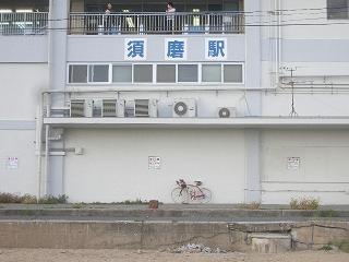 須磨駅は、ホームを出たらすぐ海岸なんですよ。