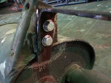ボルトを差し込んで固定したところです。 後はさび止め塗装して作業終了・・・・ですが、 |