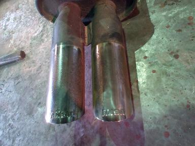 せっかく外してるんだから、錆を落としてみようとしましたが、 2本出しなので隙間の錆が落とせませんし、思ったほど綺麗 にもなりませんでした。 簡単なのは、マフラーカッター買って来て付け替える方法です が、汎用品のマフラーに交換してしまうというのもアリですね。 |
