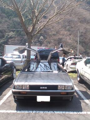 | コルベットばかりですが、他にも色々来られてました。 でもやっぱり目が行くのはコルベット。 こちらはデロリアン、目立ってました。 雑誌の取材はまだ受けていないんですが、バーベキューの予定があるので場所移動。 後でバーベキューの会場の方へ来て、取材してくれるそうです。 |
