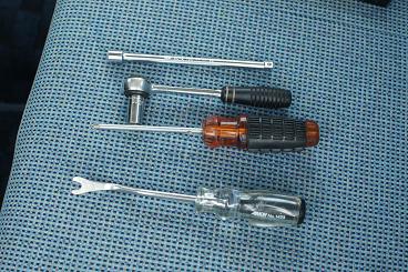 使う工具はこんなもんです。 ラチェットの延長バー 10mmソケット +ドライバー 内張り剥がし |