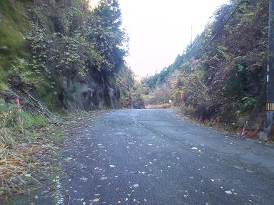 旧道の頂上付近です。 トンネルが出来てこちらを通る車両はいないのか、まったく車とすれ違いませんでした。 交通量が減った為か、路面に苔が生えて滑る箇所がありました。 |