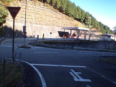 山越えて下りてきました〜。 正面に見えてるのは、播但道の料金所。 左が生野トンネル、右に行くと生野の町です。 |