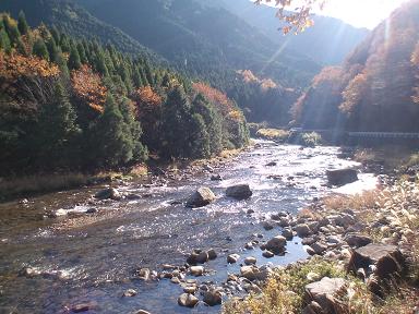 行きは山ルートで来たので、帰りは川沿いに走ります。 |