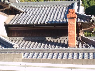 行きは気付かなかったんですが、何これ? 瓦屋根からレンガの煙突が。 |
