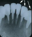 中央3本の根の先部分に黒い影がみえます。(腫れている)