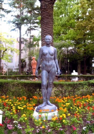 《播間公次作「夢待時」について》 【題名】「夢待時」 【材質と大きさ】F.R.P→ブロンズ、高さ188cm 【発表】2008年 第39回花と彫刻展 【作者】播 間 公 次 【作者連絡先】〒580-0021大阪府松原市高見の里1-2-25 TEL. 072-321-7088 一覧ページに戻る