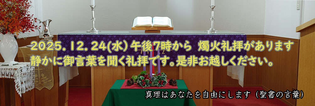 現在、オンラインで礼拝を 公開しております 閲覧による礼拝は こちらをクリックしてください。 動画による礼拝は こちらをクリックしてください 配信がうまくいっていない場合は こちらをクリックしてください。 |