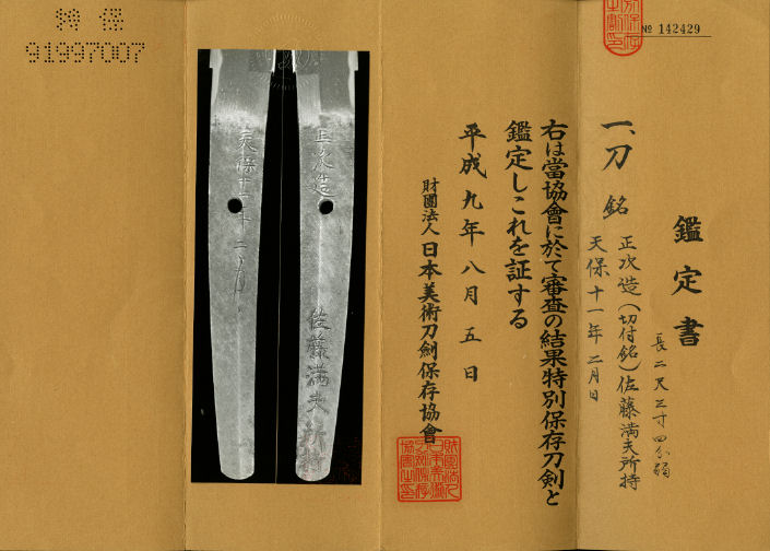 Masatugu is the swordaker of Naotane family. He learned in Masahide Suishinshi and Notane.
