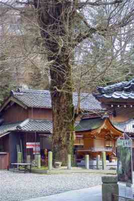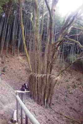 少し進むと左手に降りていくと雷神霊泉がある。山門が無く、境内に入り、本堂(写真1)が目に入って来る。親切なお坊さんが、境内を案内してくれるのは嬉しい。境内の本堂の脇には、「蛙池(写真3)」があり、ここは松尾芭蕉の真筆の「古池や蛙とびこむ水の音」という句碑がある。また、境内には樹齢450年、幹周り3.68m、樹高26m、枝張り(東西17m)、(南北16.5m)の「火伏(ひぶせ)の銀杏(写真2)」があり、境内から奥宮神社方向へ50mほど行った所に、樹齢500年、株外周11.6m、樹高35.6m、枝張り(東西32.5m)、(南北33.5m)の日本一の「大桂(かつら)(写真4)」がある。その横の東海自然歩道を歩いていくと、奥宮神社に出る。ここに琵琶湖展望台(標高約400m)があり、瀬田川、琵琶湖、琵琶湖大橋、はるか彼方に比良、比叡山が一望出来る。