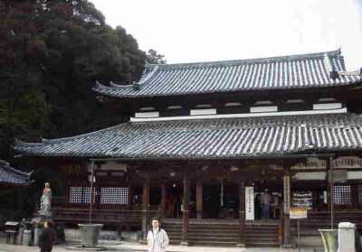 【解 説】 通称、三井寺と呼ばれ、園城寺の謂れは、弘文天皇の子の大友与多王が田園城邑を献じて創建したことによる。三井寺の境内への入り口は、2ケ所あるが、我々は長等神社側の観音堂登り口から入った。受付で拝観料を払い、144段の石段を登り切ったところが西国札所の観音堂(写真1)である。本尊は、如意輪観世音菩薩で、智証大師が香木に刻んだと言われているもので、ほかに愛染明王と蓮如上人像が安置されており、ともに重要文化財である。