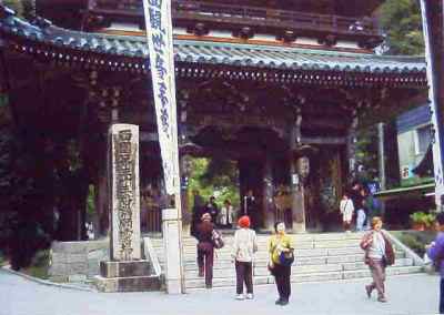 【解 説】 谷汲山華厳寺は、西国33ヶ所巡礼の最後となる満願のお寺で、通常「谷汲さん」と呼ばれている。名鉄谷汲線で赤塗りのワンマン電車(一両)(写真1)に乗り、谷汲駅をおりると張り紙があって、この線が廃線になる予定とあったので、記念に写真をとった。駅から100m程県道40号線沿いに歩くと門前町があり、すごい田舎のお寺なので、たいしたことは無いと思って来たが、予想に反して、桜とカエデの並木道が約800mに渡ってあり、満願のお寺の雰囲気が漂っている。門前町の突き当たりに大きな山門(写真2)があり、ここに運慶の作と伝えられている仁王像が我々を迎えてくれる。この山門の左右に大きな奉納ワラジがぶら下がっている。山門前に「西国三十三番満願霊場」の石標があり、ここで記念写真を撮る。