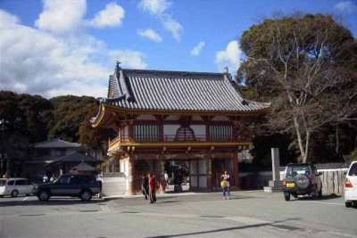 【解 説】 朱色が非常に鮮やかな仁王門(写真1)をくぐると、広大な庭園が目に飛び込む、庭園の左手の客殿の入り口で納教を済ませて、さらに奥へ進むと、左手に弘法大師が植えられたと伝えられている樹齢千数百年の「長命杉(写真2)」がある。この杉に触ると長寿を授かるといわれており、安産祈願の寺としても有名。長命杉の奥に薬師堂、観音堂、本堂(写真3)、大師堂がある。