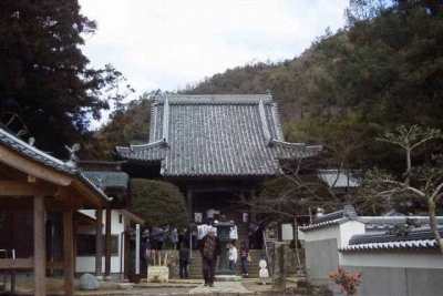 【解 説】 (赤みがかった)朱色の山門(写真1、この山門は鐘楼を兼ねた珍しい建築物)をくぐると、右手に納経所、大師堂(写真3)、正面に本堂(写真2)があり、境内は、非常に小じんまりとしている。黒谷川の川沿いにあり、別名、黒谷寺とも呼ばれている。 815年に、弘法大師によって開基、本尊は大日如来で、一尺八寸の秘仏大日如来は、弘法大師の作で、本尊の名前にちなんで、大日寺と名づけられた。この大日如来は、当時の阿波藩主の蜂須賀(はちすか)家の守り本尊であったことから、蜂須賀家の帰依で、元禄年間に堂塔の大修理がなされた。明和年間(1764年から1772年)に、本堂と大使堂をつなぐ廊下に、西国札所の33体の観音像が奉納され、安置されている。