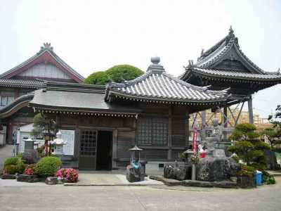 【解 説】 駐車場の直ぐそばに、朱色に塗られた仁王門(写真1)がある。この仁王門は、蜂須賀藩主が別邸の門を寄進したもので、長屋門造りである。現在ある仁王門は、10年程前に再建されたもので、非常に綺麗である。また、この仁王門にある仁王像は四国でも最大級のものと言われている。訪れたのが5月で、門の脇のツツジが満開で我々を出迎えてくれた。仁王門を入ると正面に本堂(写真2)が荘厳な姿で、小じんまりとしたお堂の中にある。井戸寺の名前の云われについては、立て看板があり、